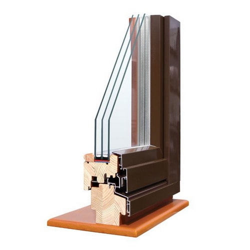 Материалы дополняют друг друга. Алюминиевые накладки обеспечивают повышенную тепло- и звукоизоляцию, расширяют возможности оформления оконной конструкции (окрашивание по каталогу RAL), увеличивают устойчивость к износу.