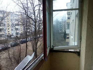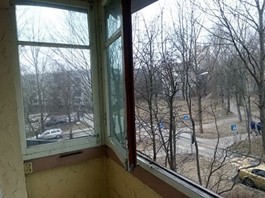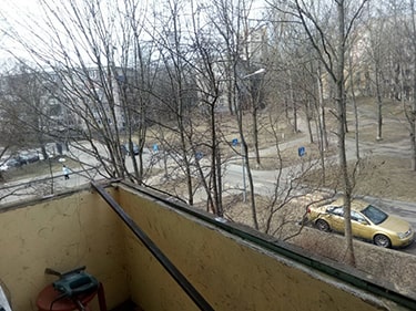 Первоначальный вид балкона до демонтажа старой балконной рамы.