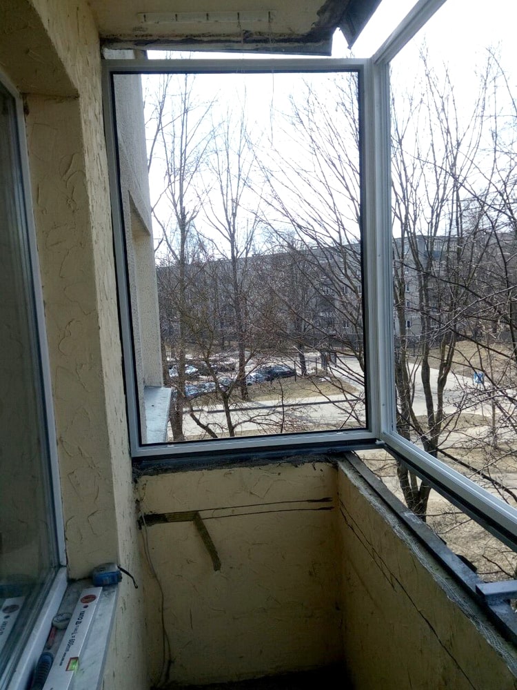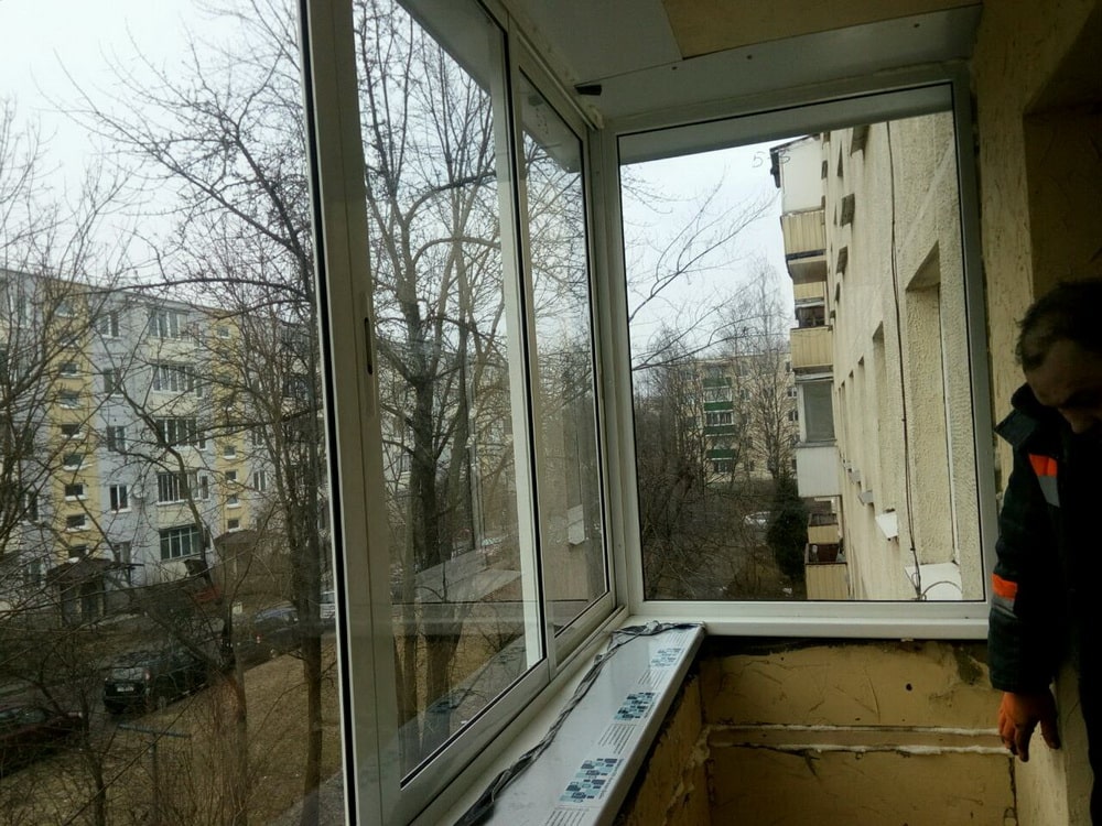 Монтаж новой алюминиевой раздвижной балконной рамы.