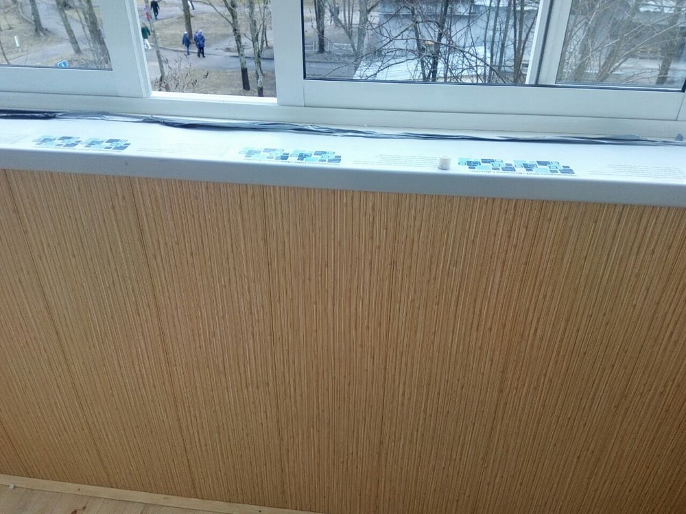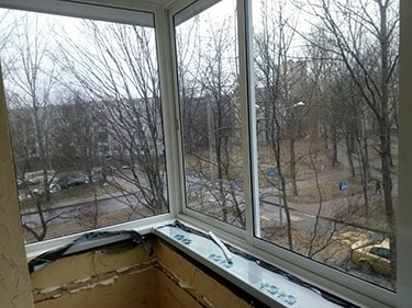 - На подоконник устанавливают алюминиевую или пластиковую конструкцию для остекления балкона с выносом.