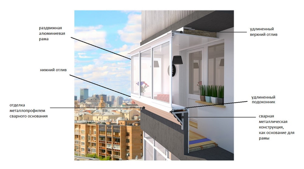 Дома советской застройки оснащались выносными балконами скромных размеров. Но можно исправить недостаток свободного места, заказав услугу выноса — расширения пространства при остеклении путем выноса линии остекления за перила балкона.