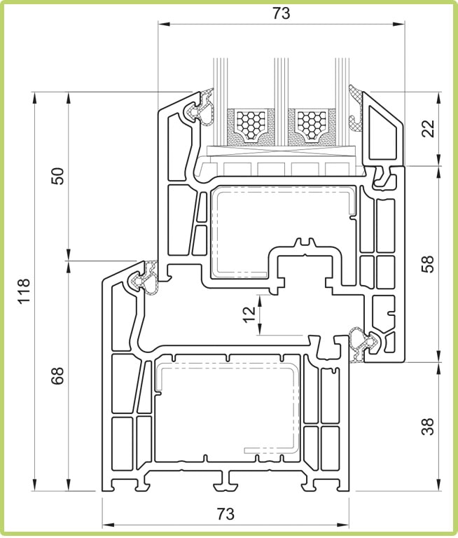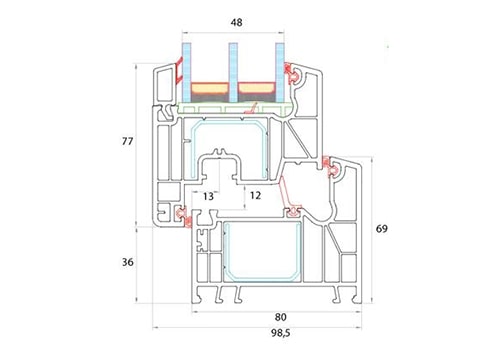 - возможность монтажа теплоизолирующего пакета 6 энерго / 14 / 6 / 14 /8 триплекс, мультистеклопакета со стеклом SunGuard Titan 70/54 нейтрального оттенка 4-10 мм.