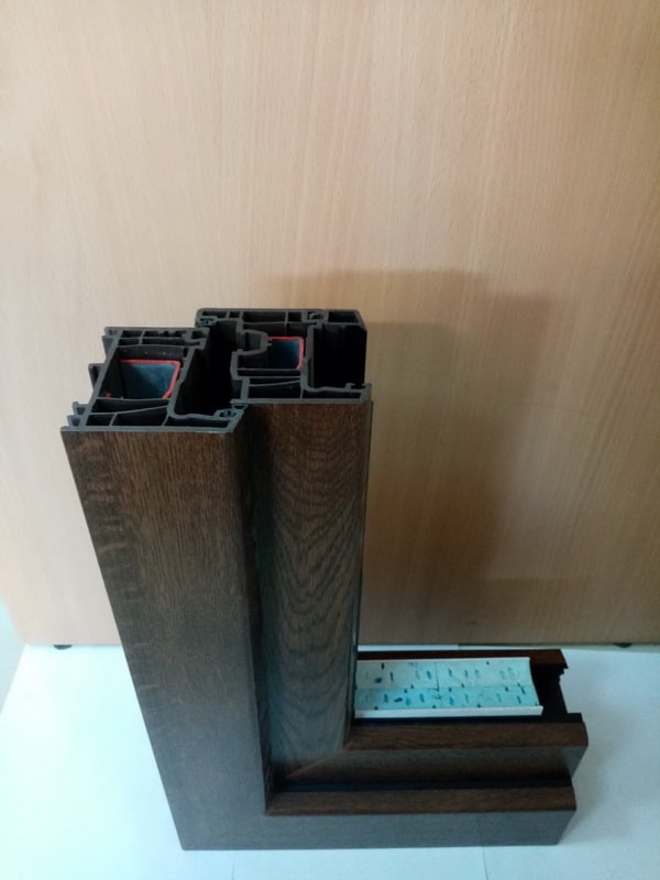 Перерабатываем профиль Kommerling 70 российского производства в темно-коричневом цветовом исполнении.