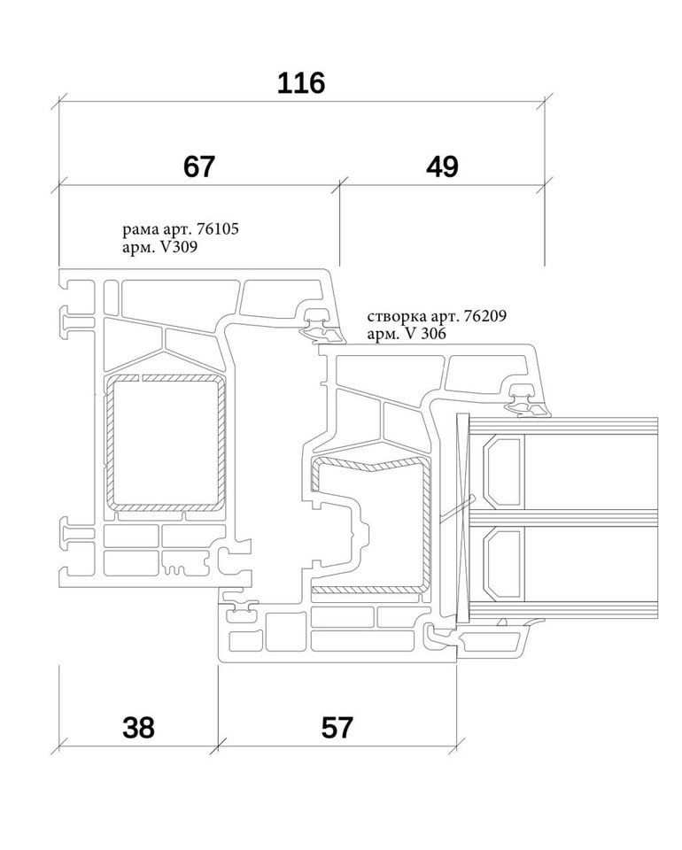 - 6 воздушных камер в раме и створке;