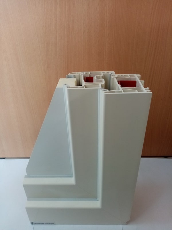 Компания «АлексПроект» перерабатывает немецкий профиль Salamander StreamLine 76 cream (кремовый), профиль в массе — кремового цвета.
