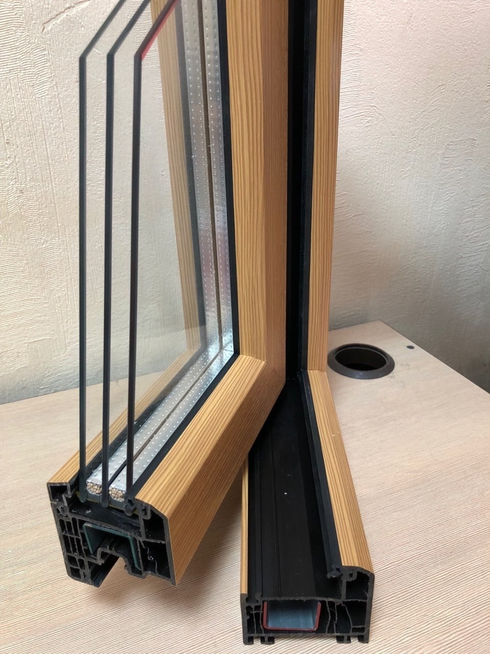 Главная особенность данного профиля в необычном кремовом оттенке и том, что, в отличие от других профильных систем, его не нужно ламинировать пленками.