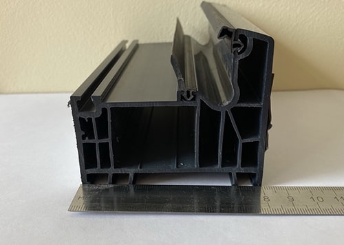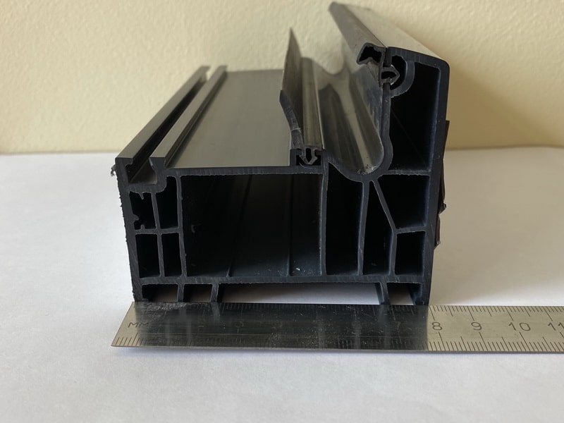 Перерабатываем кашированный профиль KRAUSS 70 в цвете антрацит (цвет по RAL 7024). Важно! В наличии есть оконный и дверной, очень удобно при остеклении новых домов.