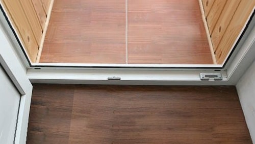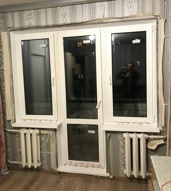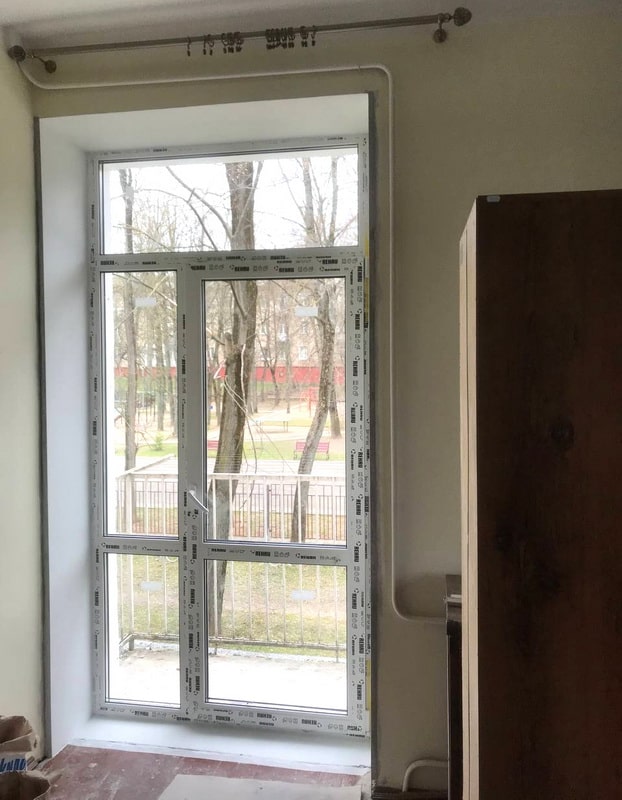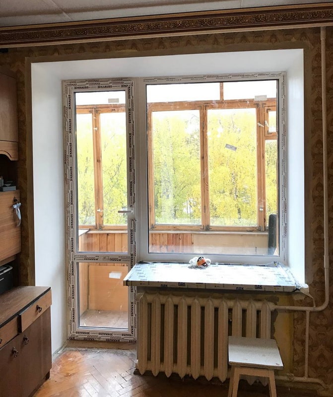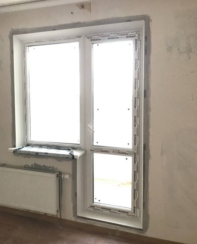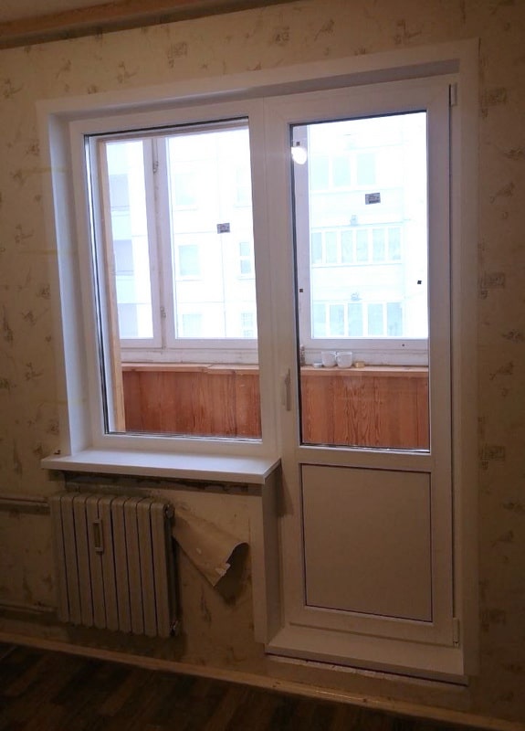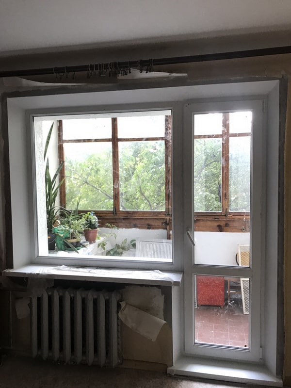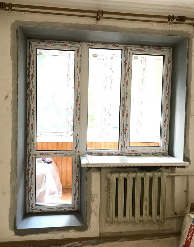 В большинстве случаев под окно смежное с балконной дверью с обеих сторон устанавливают подоконники. Порог перед балконной дверью возможно сделать из подоконника, из строительных смесей или иным способом.