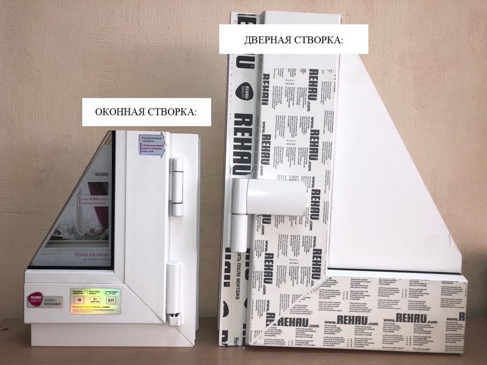 - Использование в конструкции дверного профиля створки и рамы (не оконного).