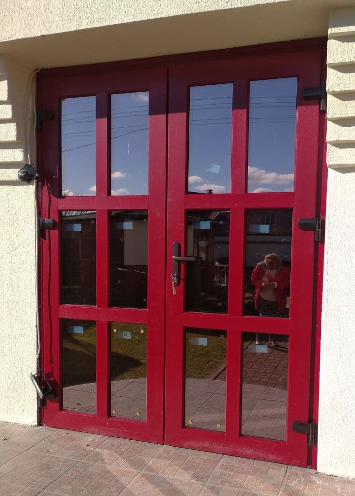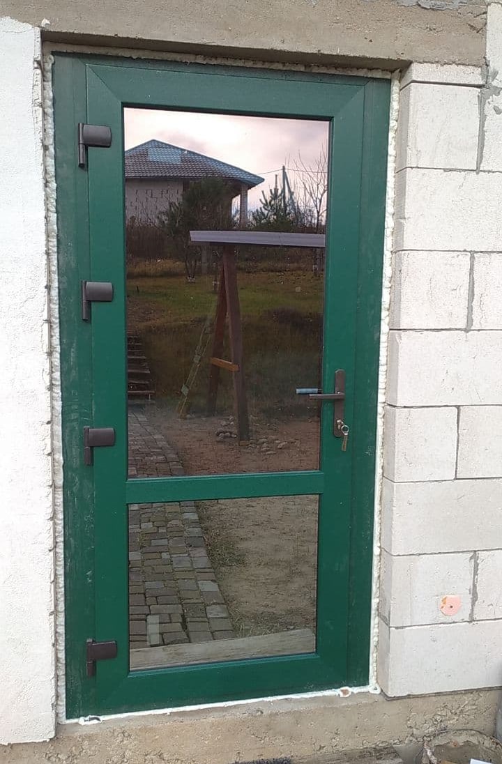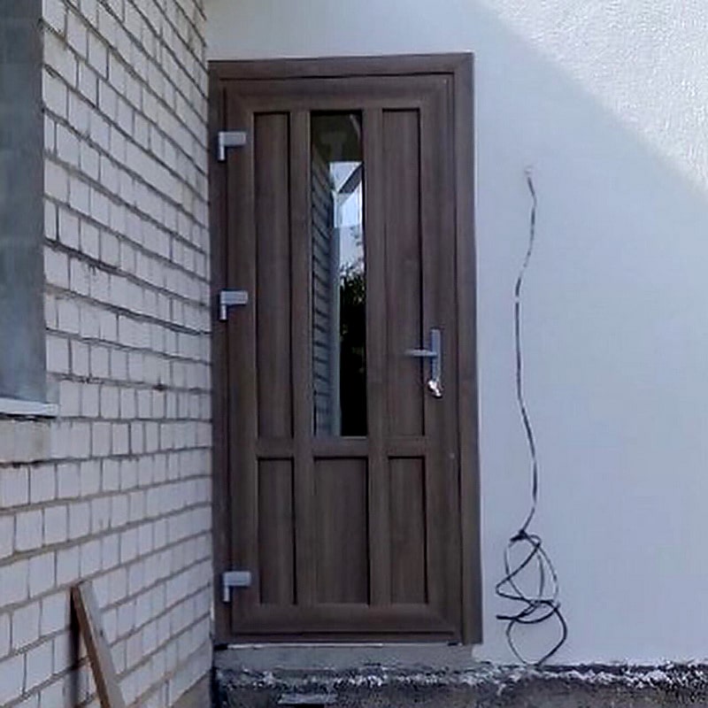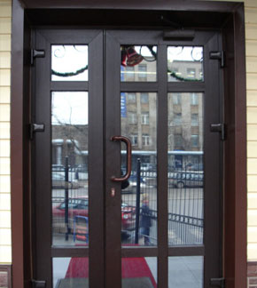 Наружные двери - двери, в которых открывающаяся часть (створка двери) сделана из дверной створки с дверной фурнитурой. Наружные двери используются как полноценные двери для входа в здания, дома как жилого так и нежилого фонда (банки, магазины, офисы, коттеджи и т.п.). В качестве ручки двери может использоваться как нажимная ручка, так и офисная ручка скоба. Двери могут быть докомплектованы ламинацией профиля, тонированными стеклопакетами, разными видами фурнитур и петель и т.п.
