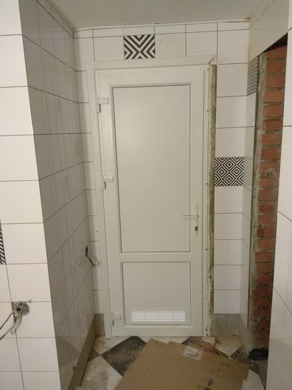 Внутренние двери ПВХ - двери, в которых открывающаяся часть (створка двери) сделана из оконной створки с дверной фурнитурой, которая адаптирована под размеры оконной створки. Такие двери подходят и используются в качестве межкомнатных дверей, в том числе во влажных помещениях (подвалы, уборные и т.п.). Стоимость дверей из оконной створки ниже, чем дверей из дверной створки.