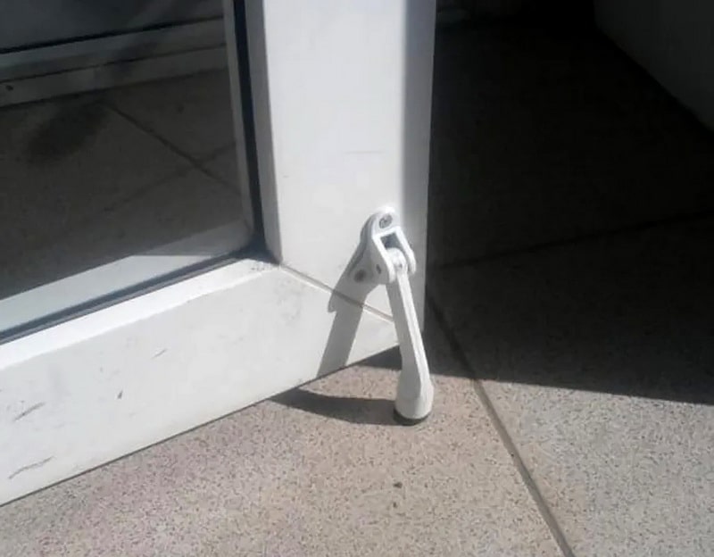 Сквозняк или сильное открывание створки на распашку может повредить створку двери об дверной откос или смежную стену, что может повредить не только створку, но и предмет о который створка ударяется. Данное повреждение не является гарантийным случаем, такое повреждение является следствием неправильной эксплуатацией двери, что снимает может лишить дверь гарантийных обязательств. Для ограничения открывания створки на пол или на стену устанавливается дверной ограничитель. Правильно заранее предусмотреть вероятность такой проблемы.