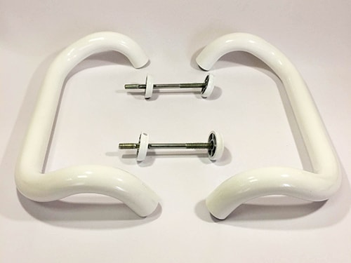 - скобы, офисные ручки, используются для офисных помещений и административных зданий, т. е. в помещениях с большой проходимостью. Модели отличаются по производителю, цвету (белые, коричневые, хромированные, покраска по RAL в любой цвет), стоимости.