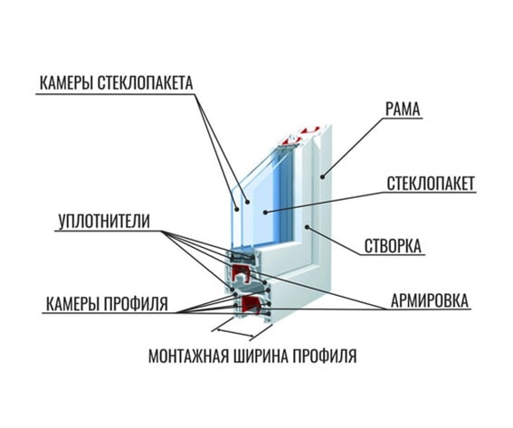 ОКНО ПВХ СОСТОИТ ИЗ:
