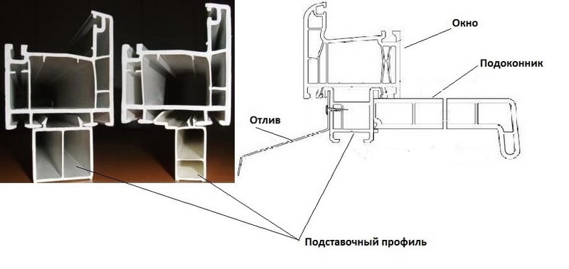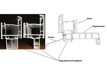 Подставочный профиль — это вспомогательный профиль, который расположен в нижней части окна, и отличается от основного профиля рамы по следующим параметрам: