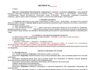 1.1. Подрядчик обязуется выполнить работы, наименование и объем, согласно _{ProductName}_ являющегося неотъемлемой частью настоящего договора, а Заказчик обязуется принять результаты выполненных работ и произвести их оплату в соответствии с условиями данного договора.