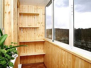 Данный вид отделки предпочтут ценители натуральных материалов. Вагонка экологична, не выделяет при нагревании вредных и ядовитых химических веществ. Стоит она дороже по сравнению с панелями ПВХ, но этот факт не снижает показатели ее популярности. Все расходы компенсируются конечным результатом. Помещение, для отделки которого используются такие пиломатериалы, выглядит уютно и презентабельно. Еще одно преимущество – это высокие тепло- и звукоизоляционные свойства. Для защиты от воздействия насекомых и грибка доску покрывают специальными лаковыми смесями. Перед проведением работ по установке выравнивать поверхности не нужно, а монтаж осуществляется в минимальные сроки. Учитывая, что вагонка плохо переносит перепады температур и влажности, такой вид отделки лучше использовать при теплом остеклении.