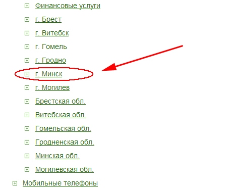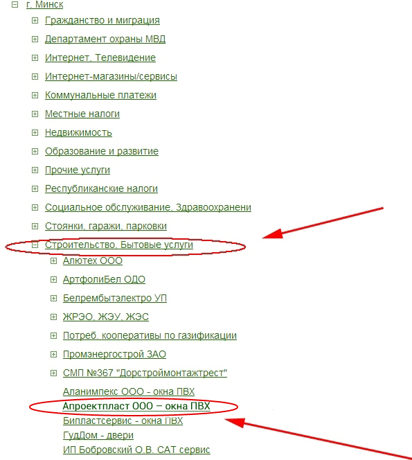 3. В развернутой ветке г.Минск найдите подветку Строительство.Бытовые услуги