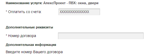 5. Для оплаты услуг в открывшейся форме Вам необходимо указать номер Вашего договора