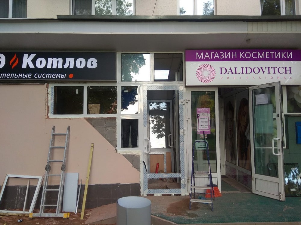 2. Расширение проема в кирпичной стене толщиной 650 мм с последующим монтажом новой алюминиевой двери (объект «Кальварийская»). Стоимость резки проема 550 руб.: