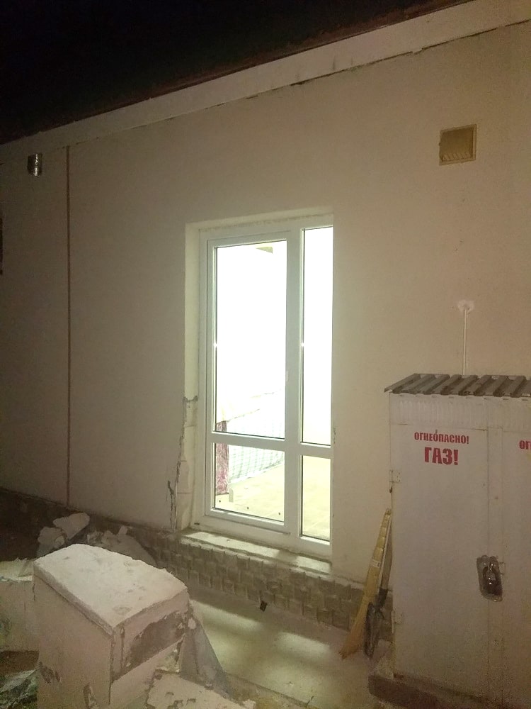 1. Демонтаж стены из газосиликатных блоков под окном с установкой двери из ПВХ (объект «Великий камень»). Стоимость резки проема: 240 руб.