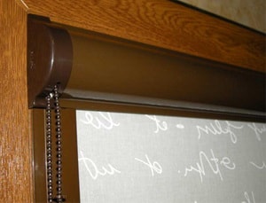Рулонные шторы наматываются на вал, который скрыт кассетным коробом. Он может быть круглой или угловой формы. Крепится на верхнюю створку оконной конструкции. По бокам используются направляющие. На нижнем крае полотна предусмотрен алюминиевый утяжелитель. Особенность механизма – плотное прилегание шторы к окну без колебаний. Цвет кассеты можно подбирать под цвет материала шторы или интерьера в комнате.