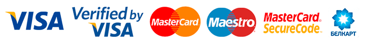 Мы принимаем платежи по следующим банковским картам: Visa, Visa Electron, MasterCard, Maestro, Белкарт