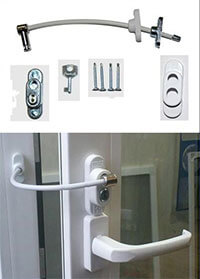 Замок-блокиратор устанавливается к нижней части профиля. Механизм замка состоит из 2-х устройств: шпингалеты и замка-блокиратора. Замок прост в применении, в закрытом состоянии он ограничивает возможность открытия окна на распашку, но оставляет вероятность открытия его на проветривание, не открывая механизм.
